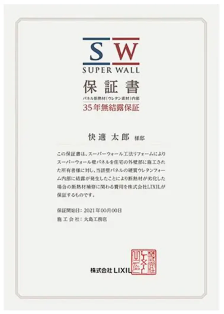 - 無結露を35年間保証