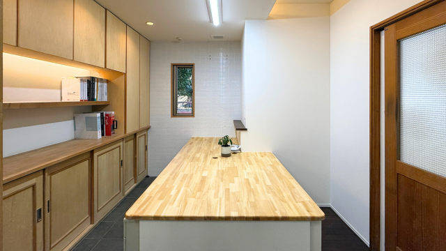 写真左側に見えているドアを開くと、事務所と繋がっています。キッチンがなくなってしまうのは少し寂しさもありましたが、事務所が広くなるのが楽しみでした。