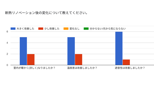 まず、驚いたのは、「断熱改修をして改善した」と感じる方が100%だったことです。